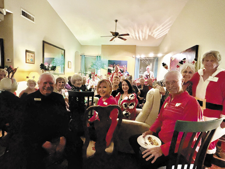 Carols, Cocktails, and Canapes kicked off the holiday season for 42 members of the British Club at the home of Lynne Pendlebury and Mike Sachse on Dec. 2 at 5 p.m. It was so much fun with each member being decked out with choices of necklaces of flashing Christmas lights, headdresses of reindeer horns, snowmen, Santa hats, Christmas glasses, etc. Everyone gleefully sang the Christmas carols accompanied by their very own British Club, piano virtuoso and host, Mike Sachse. Our very own British Club member Tim Frost was our super surprise saxophone player, and everyone enjoyed the amazing Christmas melodies that came forth from his saxophone.