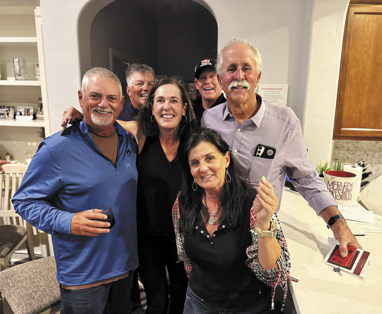 Pictured are Dave Babineau and Patty Ross, Hosts Patrick and Jacqueline Fancher, and photo-bombing in the back are Mike Schuster and Marc Lundgren.