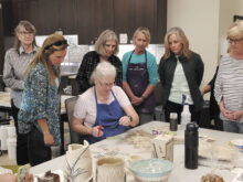 Sue Fetters At the Mudslingers studio, our members offer classes and demonstrations on various ceramic techniques. Terri Thomas and Lori Leonard offered an in-studio demonstration on Underglaze Transfers on pottery. Underglaze transfers are ceramic underglaze designs printed on a thin specialized paper which are transferred onto clay surfaces like temporary tattoos. Underglaze refers to the…