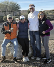 Hobie Richards Who are the two gentlemen who walk to the rock every day like it’s an appointment carved into the universe? It’s Paul Diehl and Sunny Wright on their daily walk from S. Cattle Trail (photo with Lisa Richards and Marci Whitehead). New folks ask, “Who are those guys?” Old timers say, “The Rock…