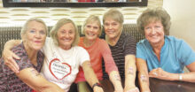 Debora Witten In celebration of her birthday, Karen Bellinger swam 75 laps in the SaddleBrooke Ranch outdoor pool. That is over 2 miles! She just keeps getting younger and younger each year. Her fans then got a tattoo to honor her accomplishments. Present was Debora Witten, Karen Bellinger, Mary Schneck, Raynelle Duhl, and Gayle Richey.