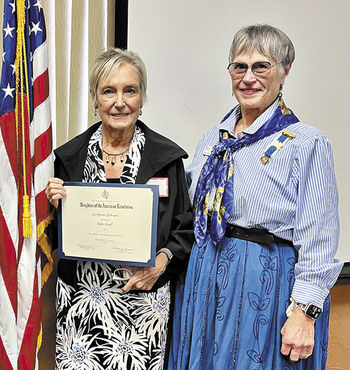 Mrs. Edie Crall of SaddleBrooke was recently honored by Daughters of the American Revolution (DAR) for her dedicated service to children in the Oracle School District. Mrs. Crall accepted the DAR Community Service Award on Nov. 13, at a meeting of the DAR El Presidio Chapter, held at the Sun City, Oro Valley community center.