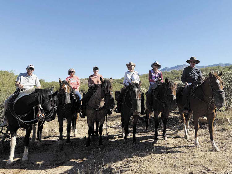 Six riders from the Horseback Riding Group enjoyed a gloriously sunny ride on Nov. 8 at Rancho de los Cerros located in the Catalina State Park. The location is only about 20-30 minutes away in Oro Valley making it a convenient place to enjoy riding through the beautiful State Park and seeing the spectacular panoramic view of the Catalinas.