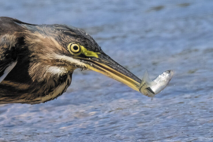 Green Herons are a true testament to the ingenuity of the avian world. They are among the few tool-using birds, fabricating various baits that entice fish to where they can grab them. They will sometimes put pieces of bread, feathers, or mayflies on the water’s surface to attract fish. Another technique I have witnessed here at the Ranch pond is the Green Herons spreading their wings, turning them into an umbrella to create a shadow on the water, which attracts the fish that seek cooler areas to escape the heat.