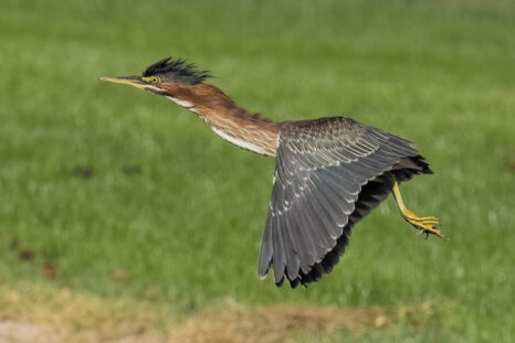 This month, I would like to feature the Green Heron seen along the SBR pond’s edge during these fall months. When someone says they saw a heron on the pond, it probably was a Great Blue-Heron or a Black-crowned Night Heron. The herons are in the Ardeidae family and include egrets and bitterns. In all, 75 species of this family are currently recognized. The Green Heron is found in the genus of Butorides along with the Striated Heron. There is no difference between the plumages of the male and female.