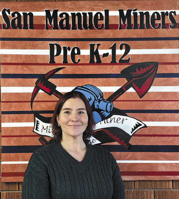 Amber Walden, Principal of Mammoth San Manuel PreK-12 Schools, told Pizza Party attendees about how SBCO scholarships have helped local students reach their academic and career goals.
