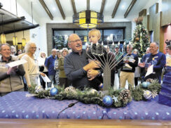 This Chanukah, a group of Ranchers gathered at The Bistro for the first night of Chanukah to light the traditional menorah (a candelabra used in Jewish worship). Joel Barnehama, Gary Gilman, and Larry Schweitzer welcomed the large group and together recited the traditional holiday blessings. Eli Offer, grandson of Leslie and Stuart Offer lit the first candle.